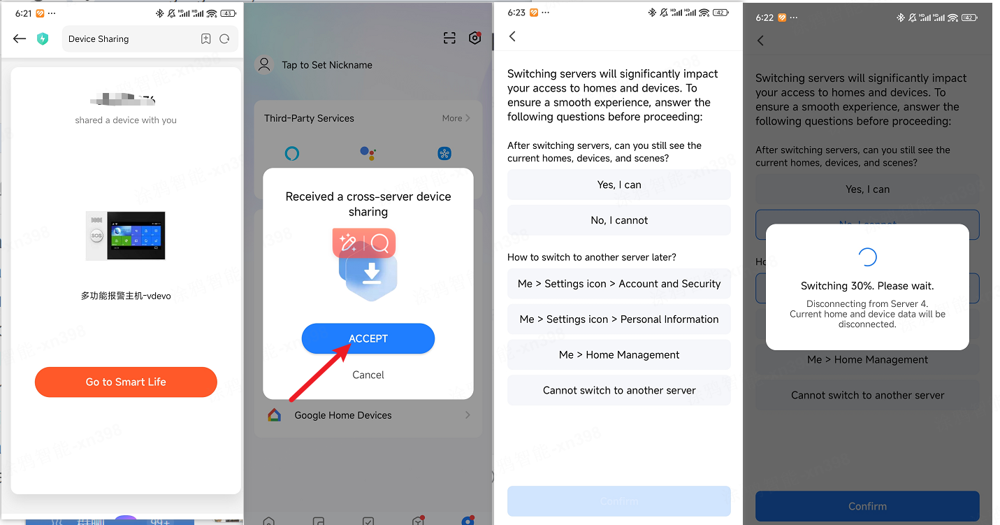 Click on the shared link to redirect from the browser to the App. If at this point the data center you belong to is different from that of the device owner, a cross-region sharing prompt will appear. Switch to the device owner's data center, then click the shared link again to accept the sharing.