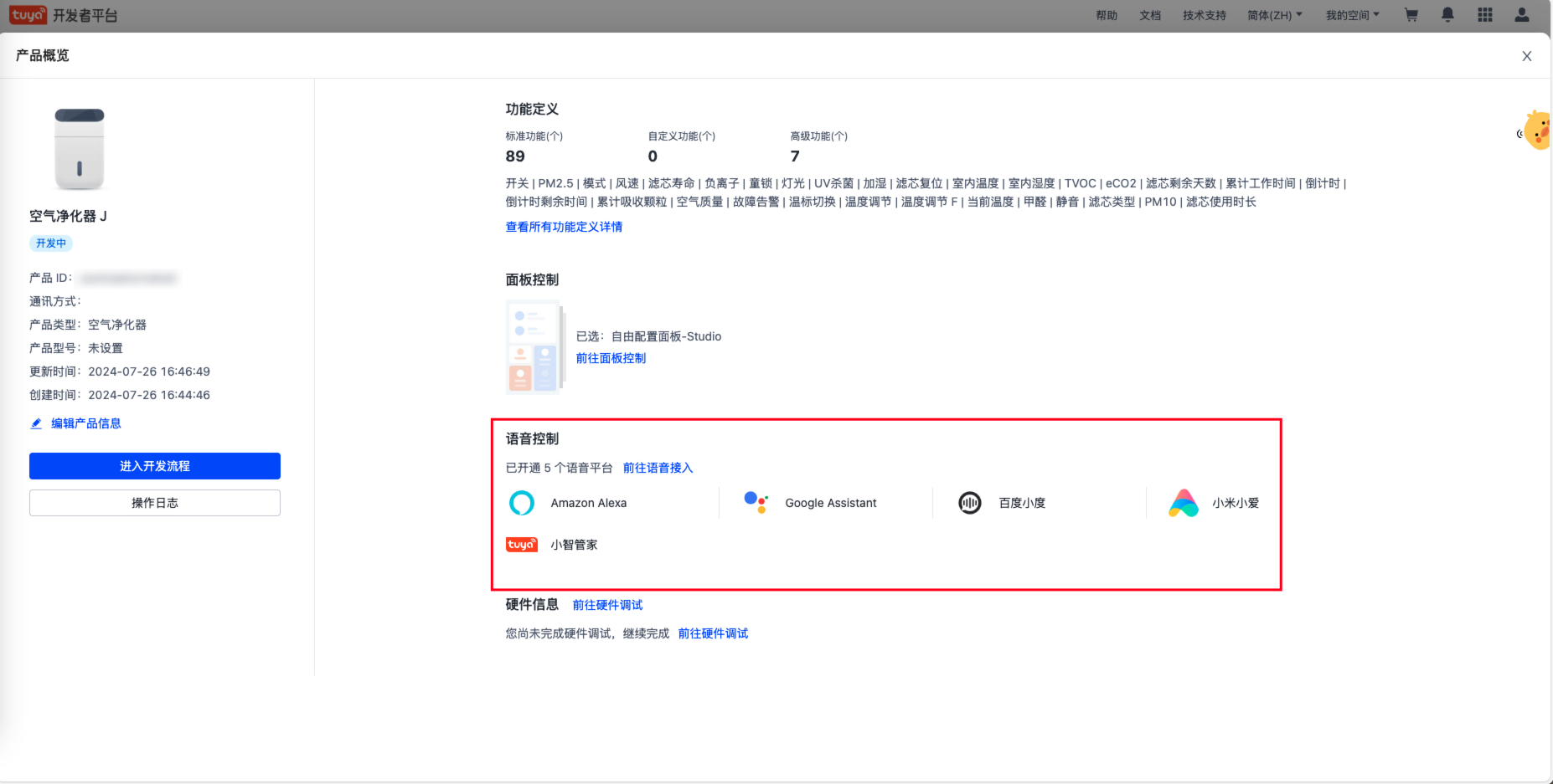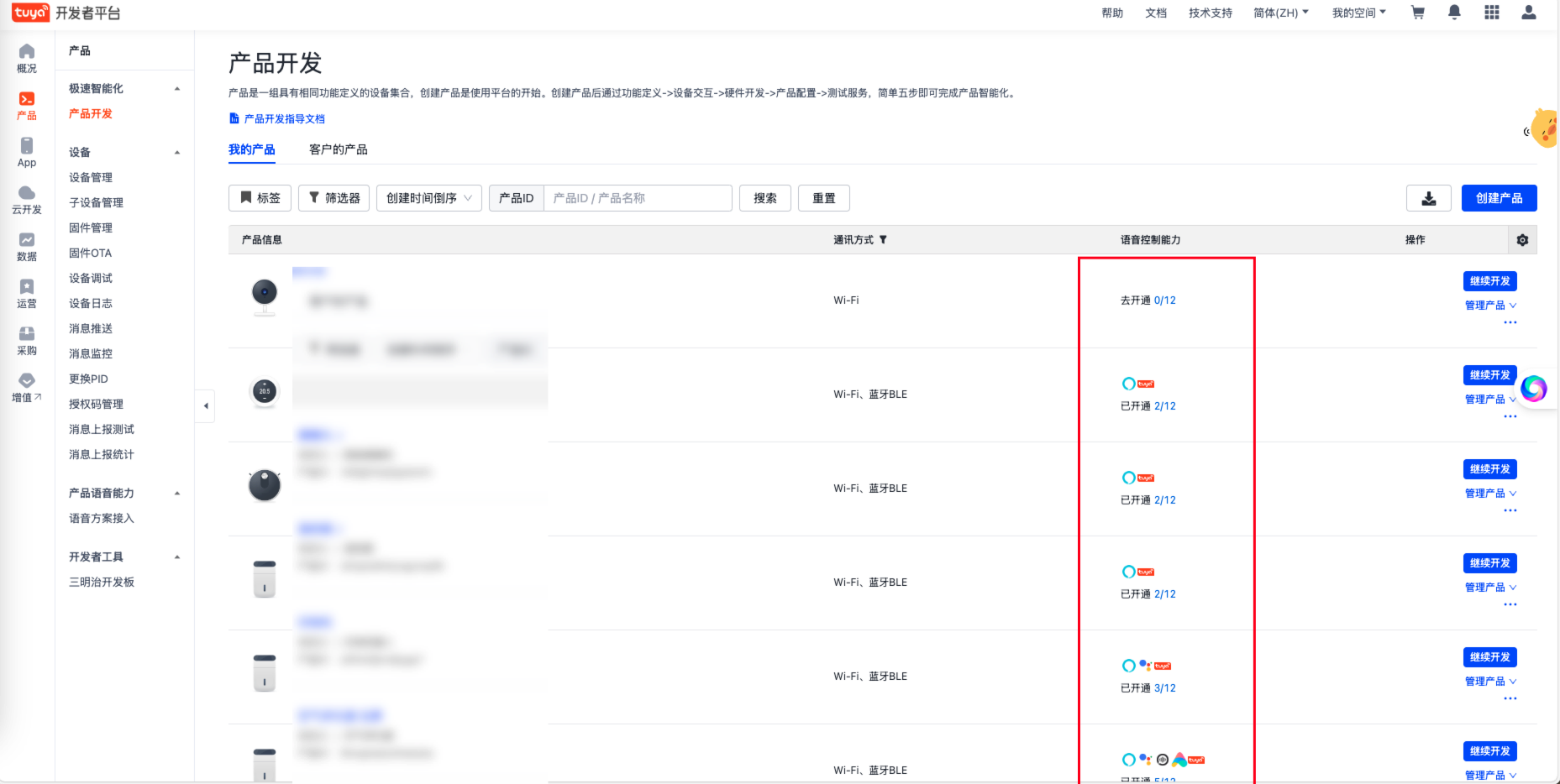 在开发者平台的产品列表和产品详情可以查看已经开通的三方语音服务。