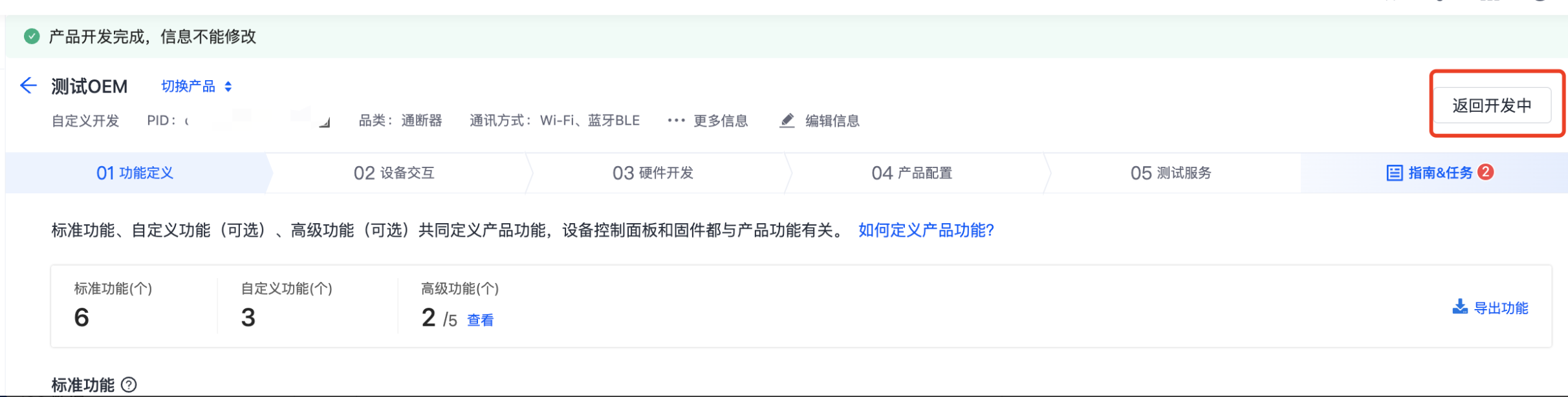 风险:若返回开发中,OEM状态将变更为ODM,该产品与已经OEM的产品信息将不一致,需确认。