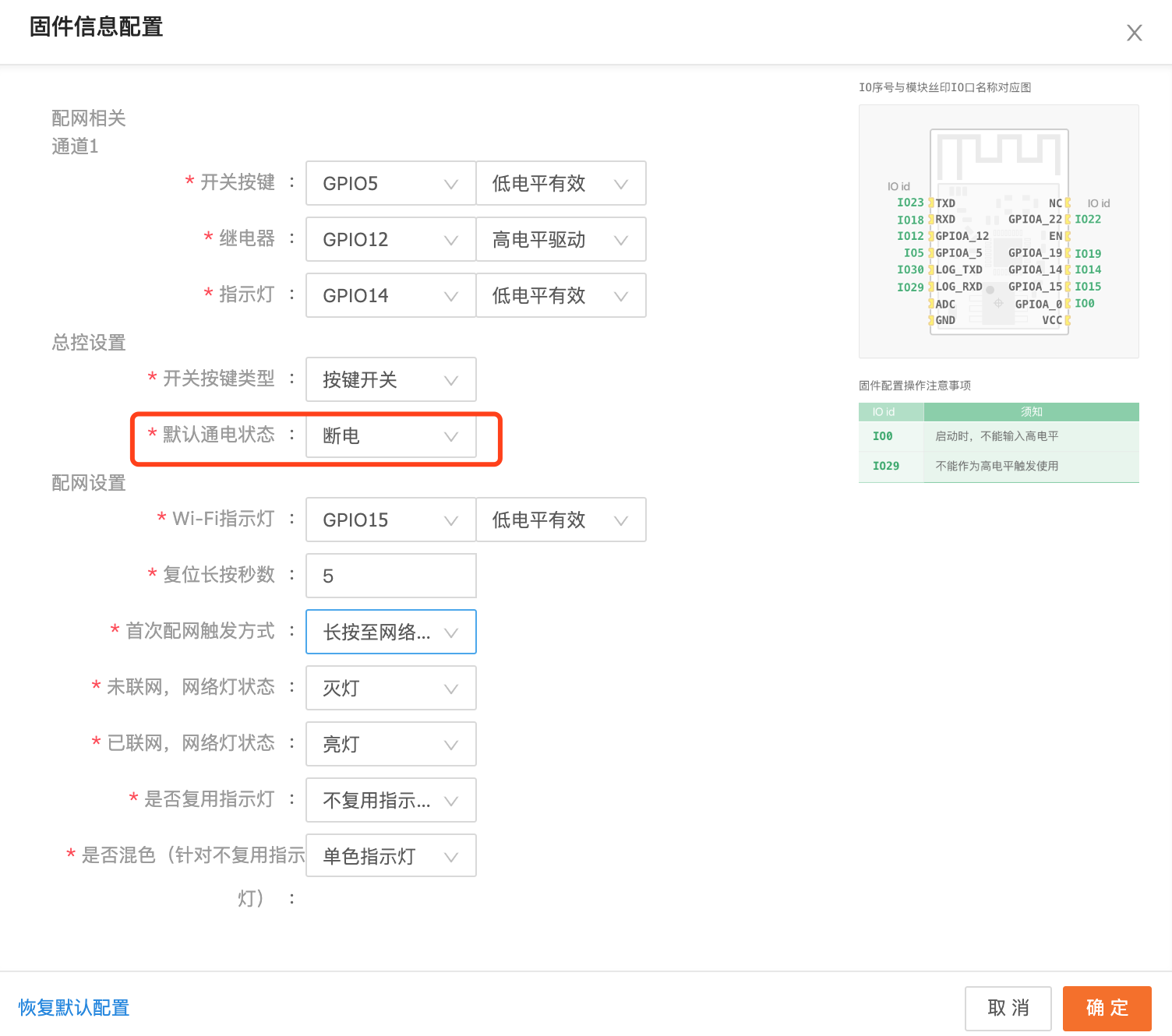 产品开机的初始状态能否默认是继电器断开的状态?(厂家)