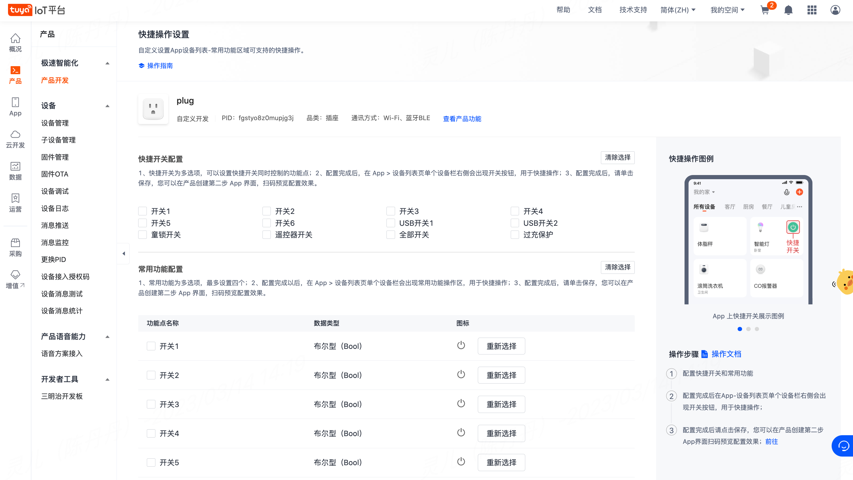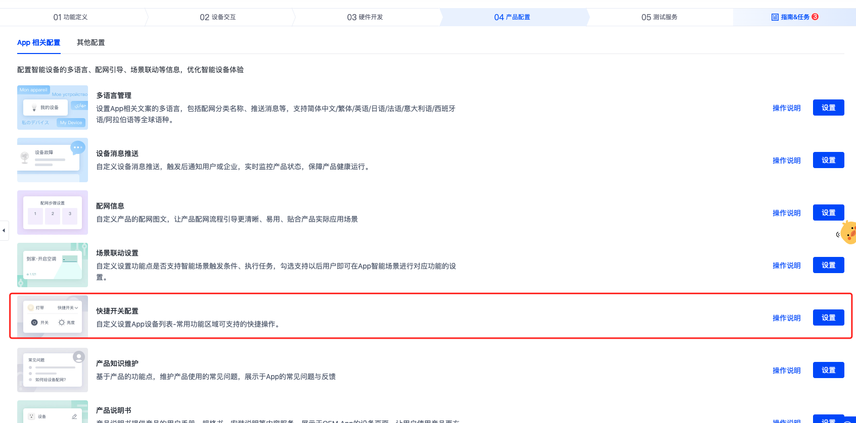 产品开发-产品配置-快捷开关配置