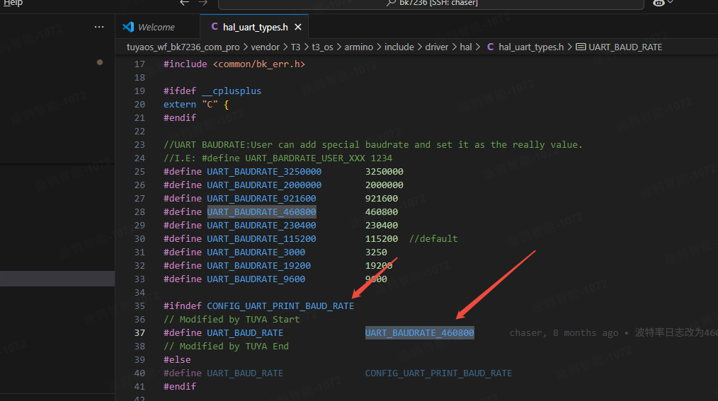 #defineUART_BAUD_RATE这个宏对应的大小,默认460800
