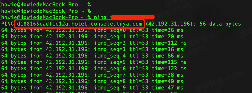 临时用泛域名登录,获取泛域名的方法:通过ping命令,来获取红框中的泛域名。